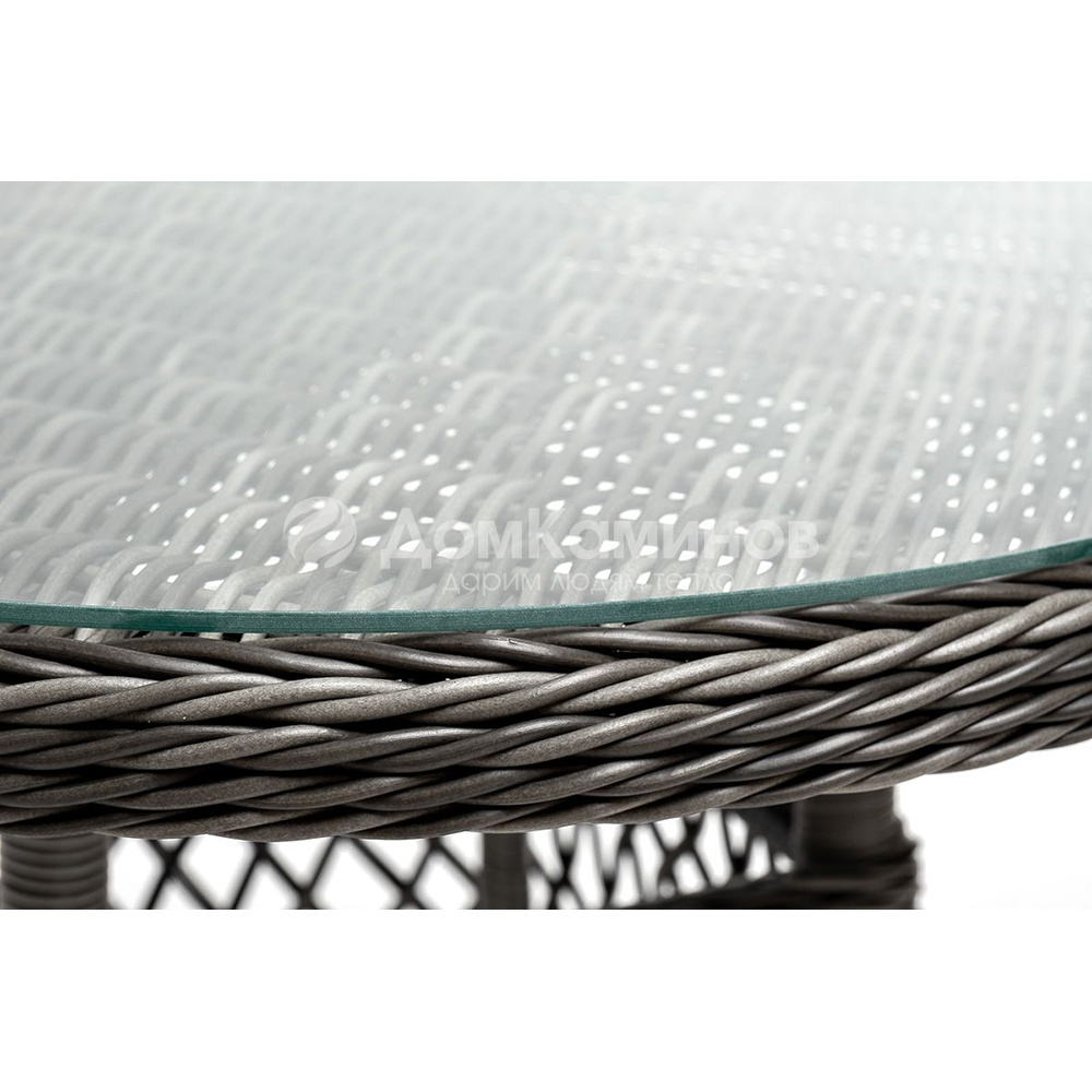 Круглый садовый стол «Эспрессо» из искусственного ротанга.Каркас изготовлен из прочного и очень легкого алюминия. Вручную оплетен синтетическим ротангом натурального соломенного оттенка.Столешница покрыта прочным стеклом, толщиной 5 мм. Благодаря высокопрочным материалам, обеденный стол очень практичный и подходит для всесезонного использования даже на улице.В дополнение к обеденному столу можно приобрести ротанговые кресла серии «Латте» в аналогичном цвете.Диаметр плетеного стола – 800 мм, высота - 750 мм.