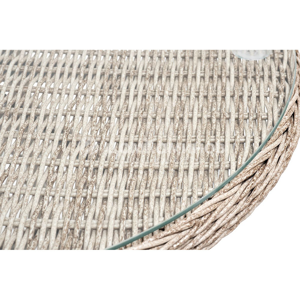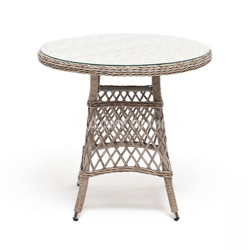 Круглый садовый стол «Эспрессо» из искусственного ротанга.Каркас изготовлен из прочного и очень легкого алюминия. Вручную оплетен синтетическим ротангом натурального соломенного оттенка.Столешница покрыта прочным стеклом, толщиной 5 мм. Благодаря высокопрочным материалам, обеденный стол очень практичный и подходит для всесезонного использования даже на улице.В дополнение к обеденному столу можно приобрести ротанговые кресла серии «Латте» в аналогичном цвете.Диаметр плетеного стола – 800 мм, высота - 750 мм.
