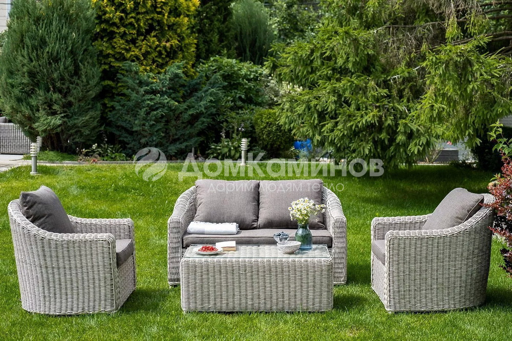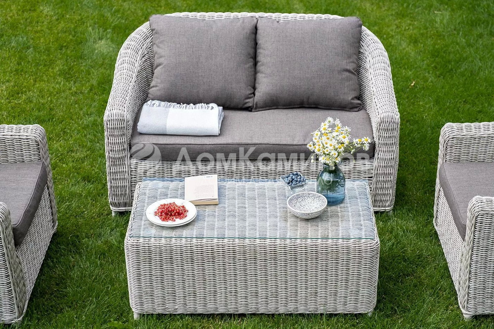 В основе мебели находится алюминиевый каркас высокой прочности. Декоративной составляющей является ручная круглая оплетка, которая выполнена из искусственного ротанга. Столик представлен в бежевом цвете.