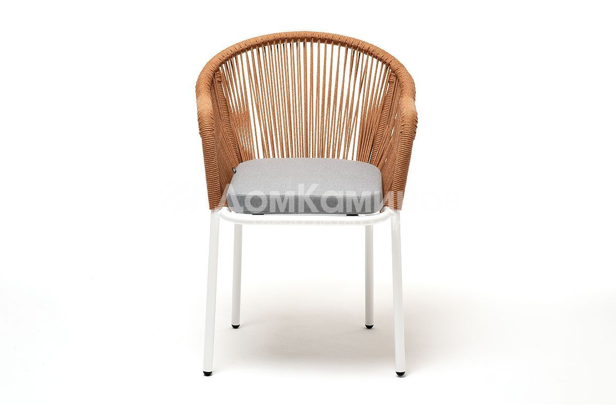 Стул 4SIS Лион из роупа каркас из стали светло-серый (RAL7035) муар, роуп оранжевый меланж, ткань светло-серая