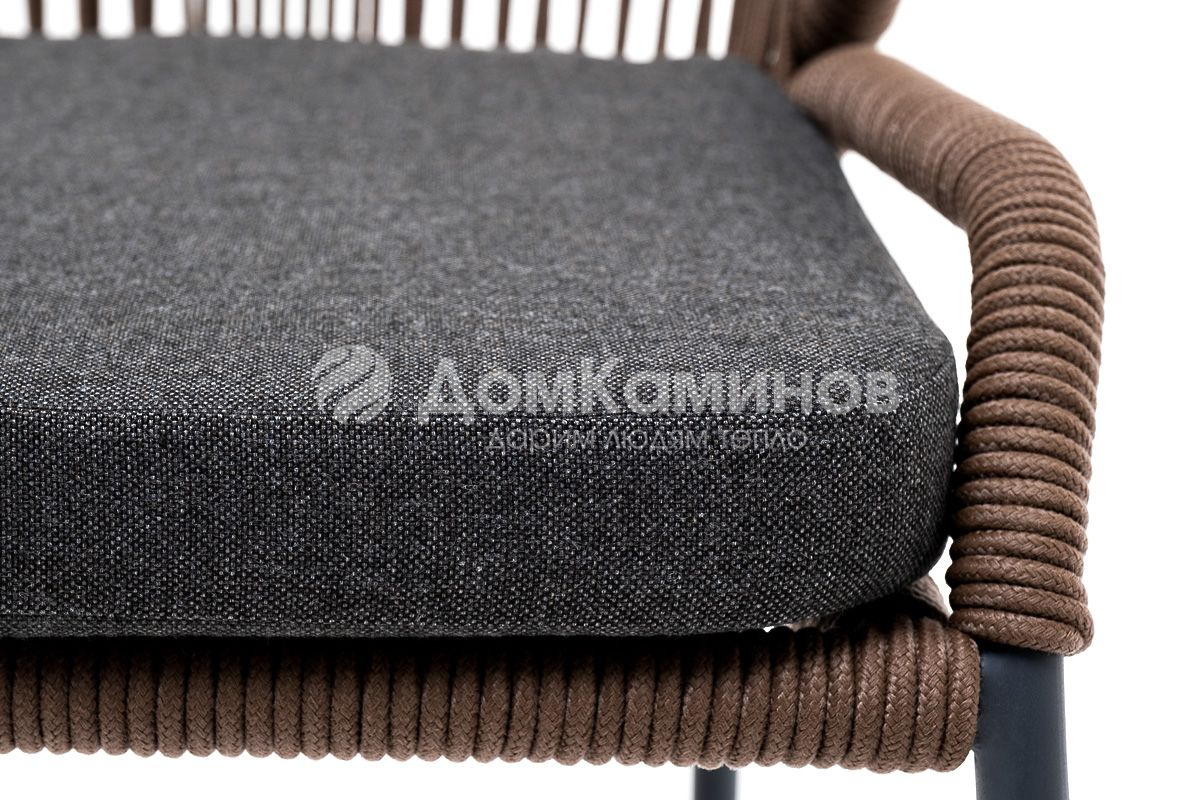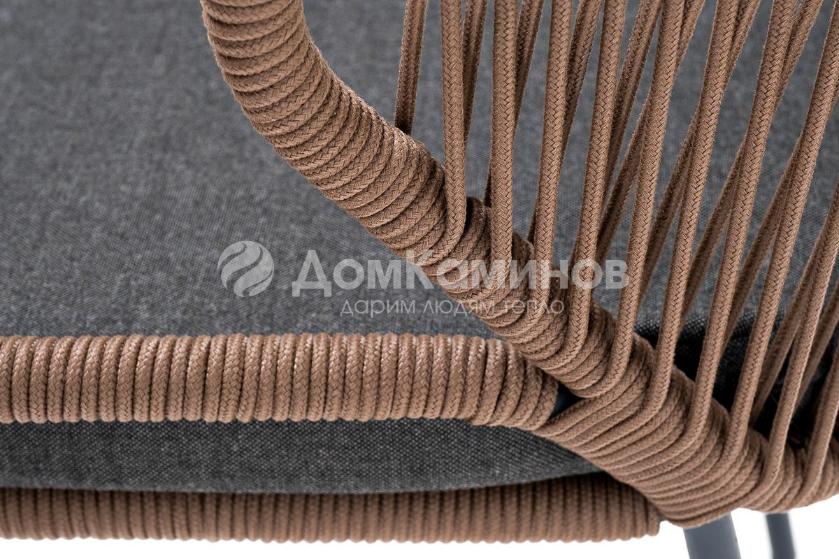 Стул 4SIS Милан из роупа, каркас алюминий серый муар, роуп коричневый, ткань темно-серая 027