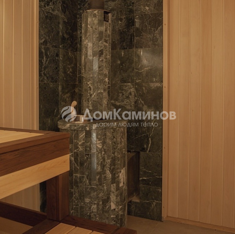 Печь для бани от завода Ферингер, в облицовке Ламель, может быть изготовлена из камня жадеит (змеевик, Rosa Levante) «перенесённый рисунок»